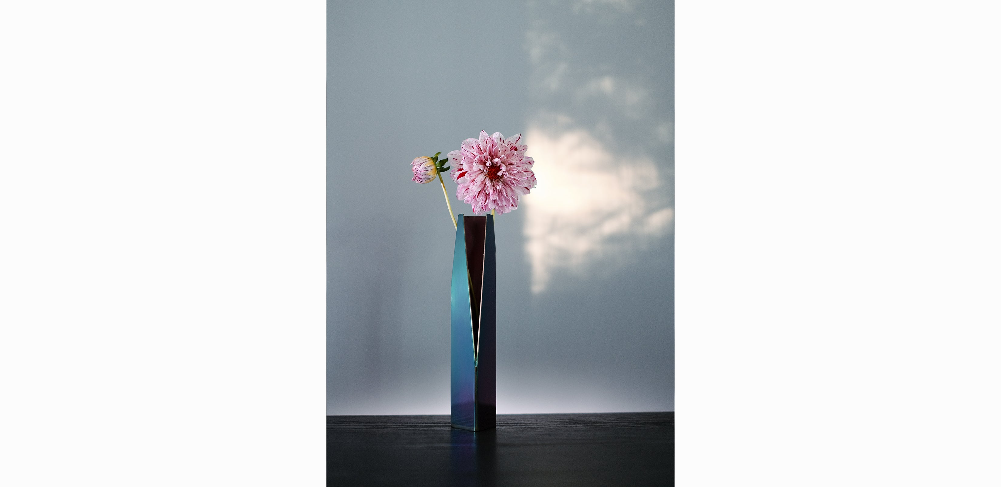 Layers Vase は透明度が高い板ガラスを多層に合わせ積み上げた手のひらサイズの花器です。 手作業で一枚づつ切断されたガラスの断面を通した光は、独特な揺らぎを表現しています。 江戸硝子や江戸切子などの伝統工芸品を筆頭に、東京都墨田区はガラス産業が盛んなものづくりの街です。 鏡や板ガラスを取り扱う職人は建築シーンで活躍することが主ですが、kana keri ya のLayers Vaseは巨大なモニュメントから芸術家依頼のアートワークまで、幅広くの板ガラス加工を彩る熟練の職人により製造されています。