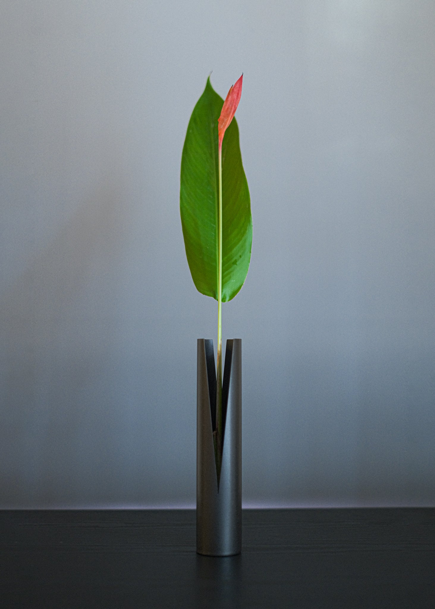 ・スリットから花をのぞかせたり、傾けたり、一輪を挿すだけで趣きある佇まいに