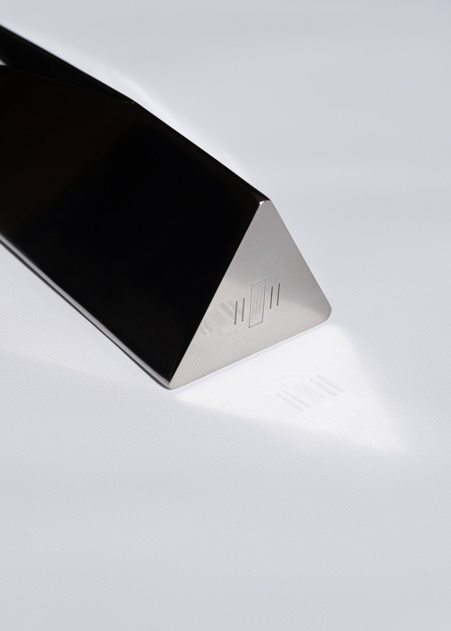 ・鏡面仕上げが施されたシルバー色の表面は、反射する光や映り込む風景も魅力