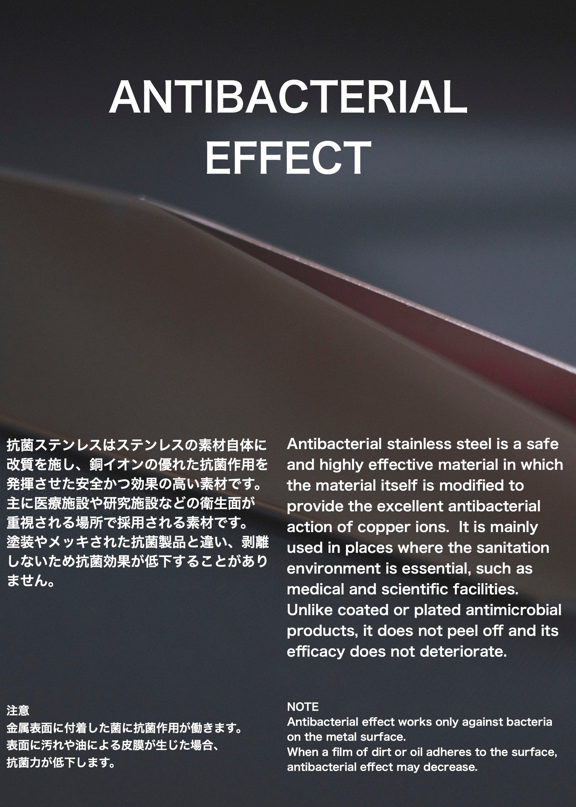 ・塗装やメッキされた抗菌製品と違い剥離しないため抗菌作用が低下しない